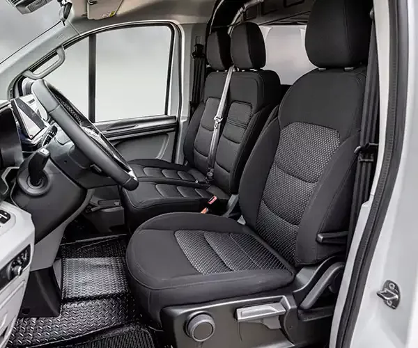 Les matériaux de haute qualité et les équipements bien pensés, tels que le siège conducteur réglable sur 8 positions avec accoudoir central, le support d’écriture rabattable intégré au siège passager et l’éclairage intérieur à LED, garantissent un confort maximal et une journée de travail plus efficace.